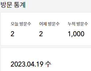 21년 9월 26일에 개설했는데. 그동안 너무 관리를 안했나? 이제야 방문자 1000명을 돌파하다니..