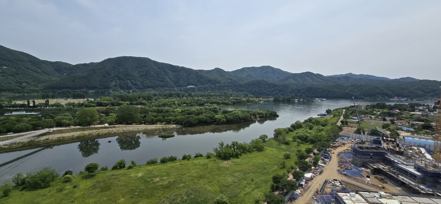 가평 달전리에 짓고 있는 한양 수자인아파트의 101동 84C에서 보이는 뷰라고 한다.