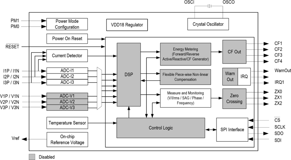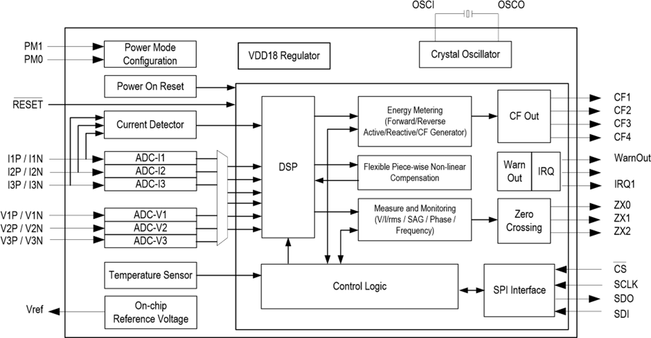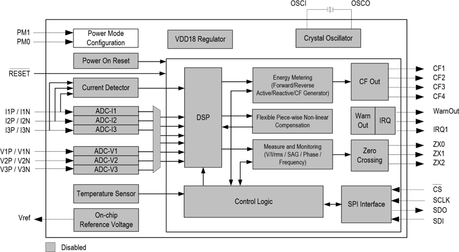 이 칩은 분할되지 않은 유효, 무효 피상 에너지를 측정한다. 유효 기본과 고조파 에너지를 분할하는 것 처럼(?). 레지스터들은 아래와 같다.