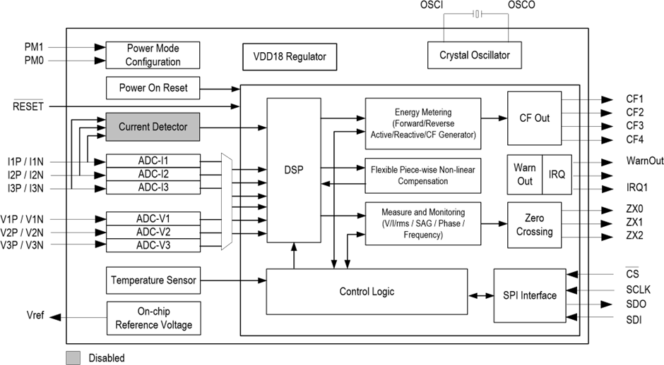 비교기들은 DetectCtrl레지스터를 설정함으로서 파워다운이 될 수 있다. 전류 검출은 DetectCtrl 레지스터의 제어비트를 사용해서 일반 모드에서 활성화 될 수 있고, 교정될 수 있다.