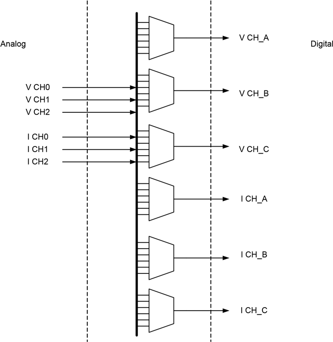 6개의 아날로그 ADC 채널은 6개의 디지털 측정 채널에 유연하게 할당될 수 있다.