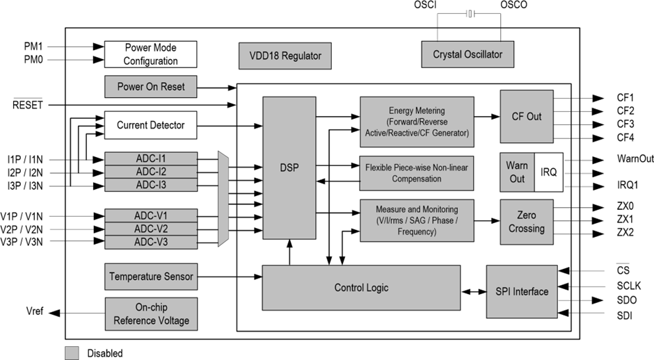 이 칩은 분할되지 않은 유효, 무효 피상 에너지를 측정한다. 유효 기본과 고조파 에너지를 분할하는 것 처럼(?). 레지스터들은 아래와 같다.