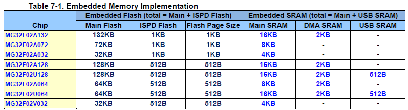 MG32F02A072 : 72kB