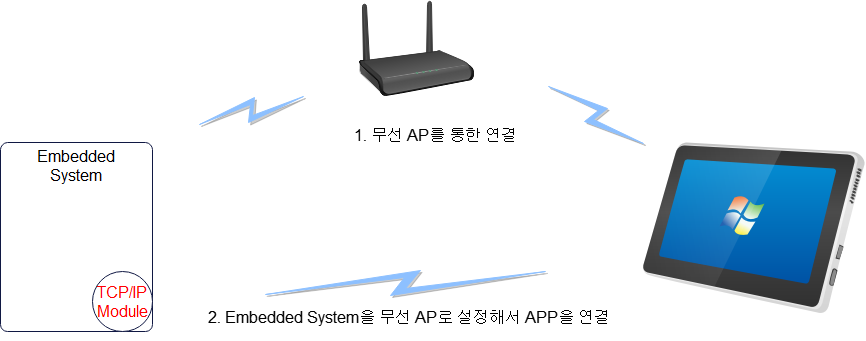 임베디드 시스템에 간단히 TCP/IP 무선 모듈을 추가해서 무선 AP로 구성할 수 있다.