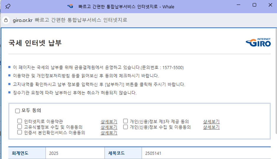 바로 인터넷 납부로 들어간다.